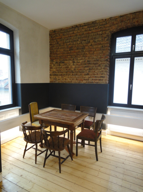 Empfangsdiele mit Gründerzeit-Schrank als Garderobe und großem Spiegel